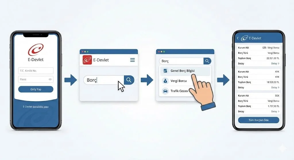 E-Devlet, borç sorgulama işlemini en hızlı şekilde yapmanı sağlar. Ayrıca sistem tamamen ücretsizdir.