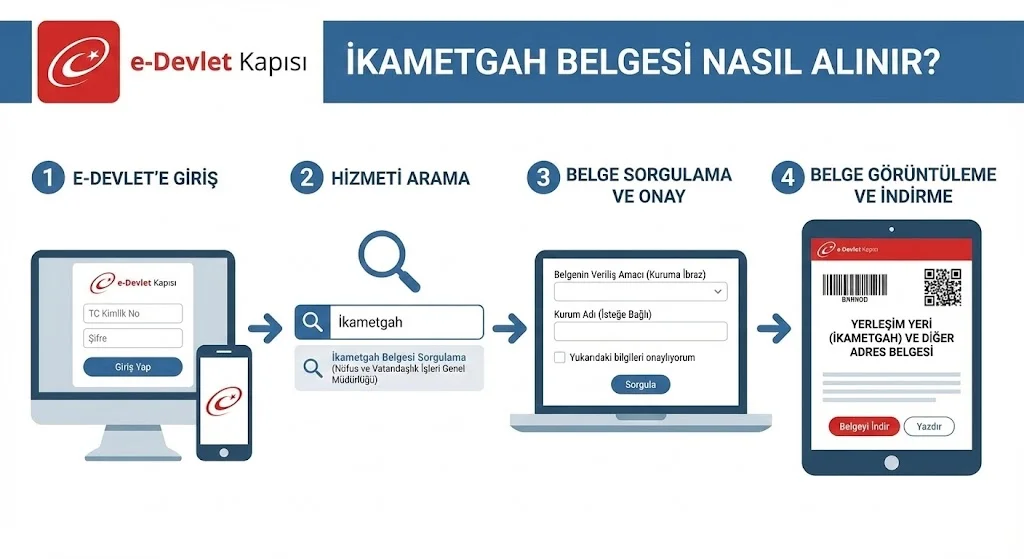 Adres değişikliği sonrası ikametgah belgesi, e-Devlet’ten ücretsiz alınabilir.