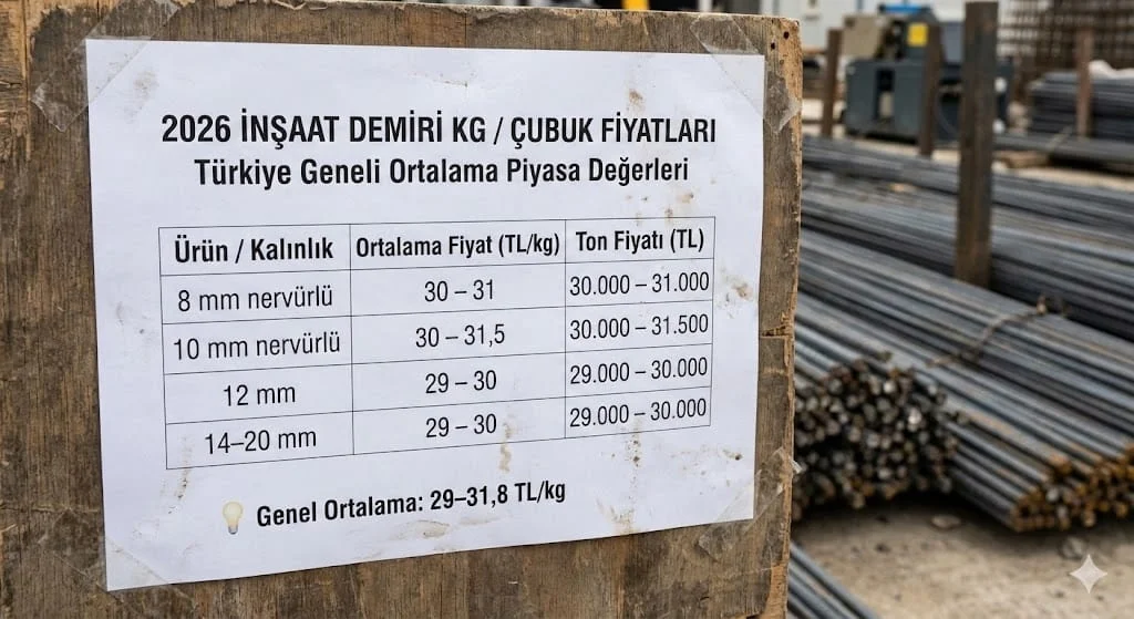 Özetle, 2026 yılında inşaat demiri fiyatları yüksek seyrini koruyor. Kilogram bazında 30 TL civarı artık yeni normal haline gelmiş durumda.