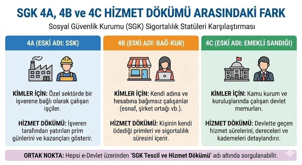 4A, 4B ve 4C Hizmet Dökümü Arasındaki Fark